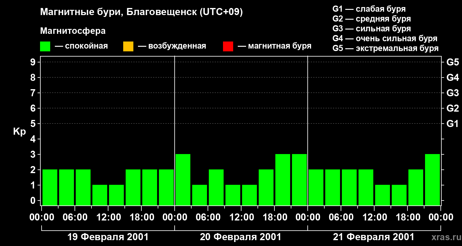 Магнитные бури в Благовещенске — 21 февраля 2001 года