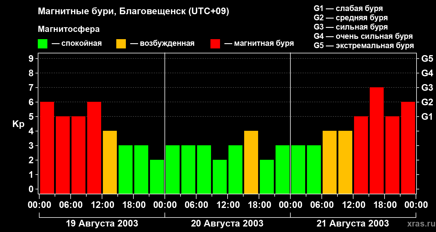 Магнитные бури в Благовещенске — 21 августа 2003 года
