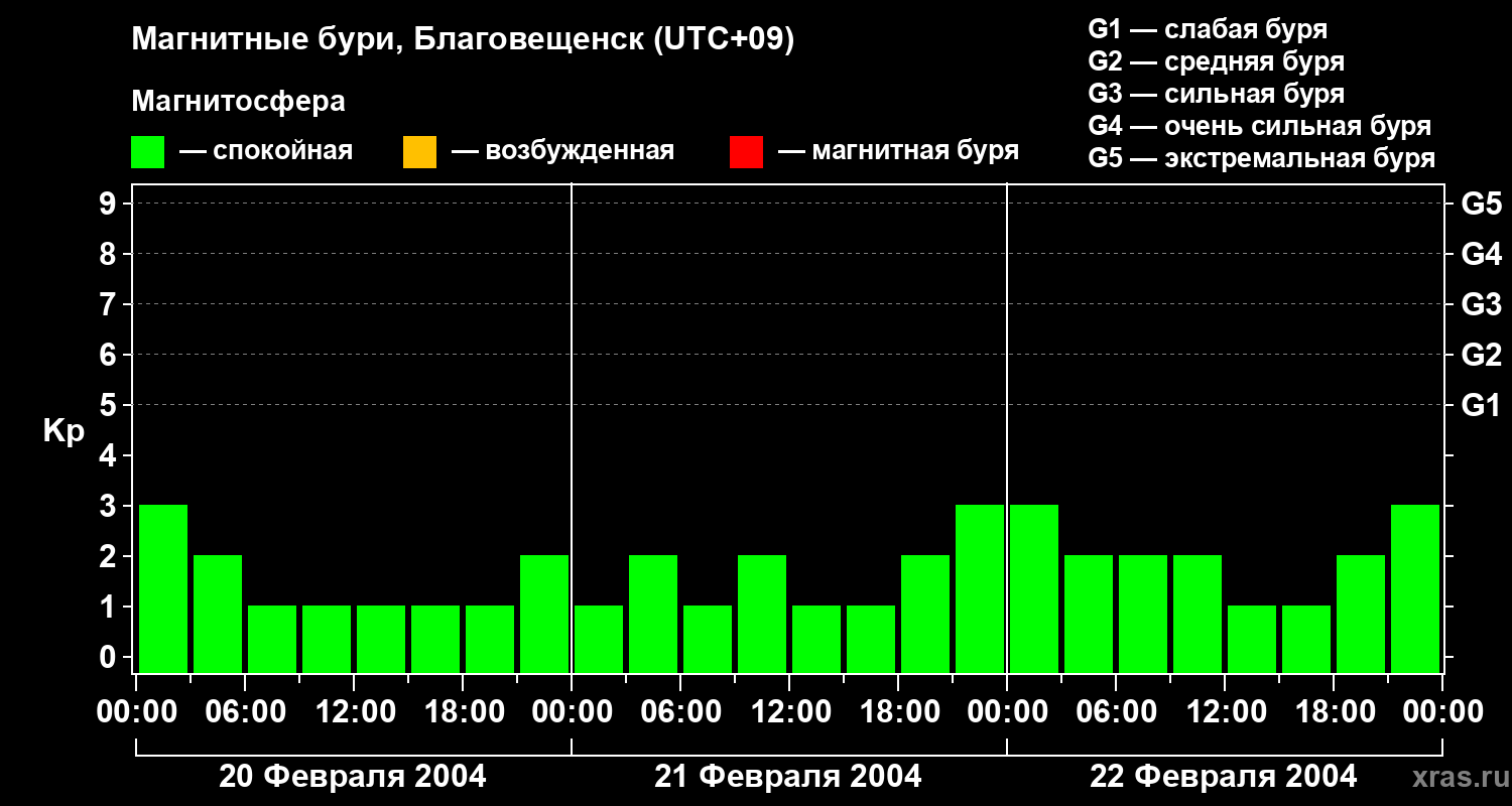 Магнитные бури в Благовещенске — 22 февраля 2004 года
