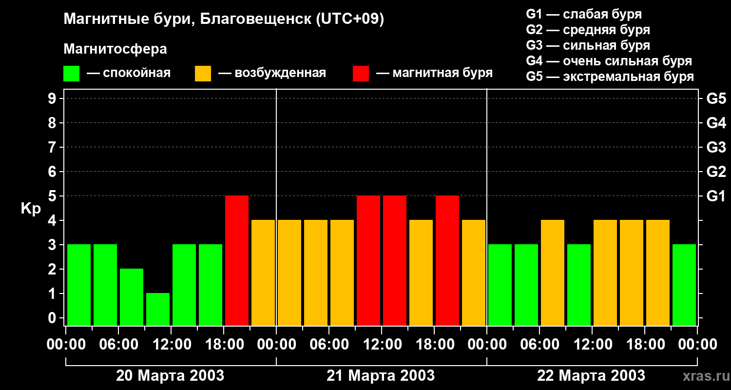 Магнитные бури в Благовещенске — 22 марта 2003 года