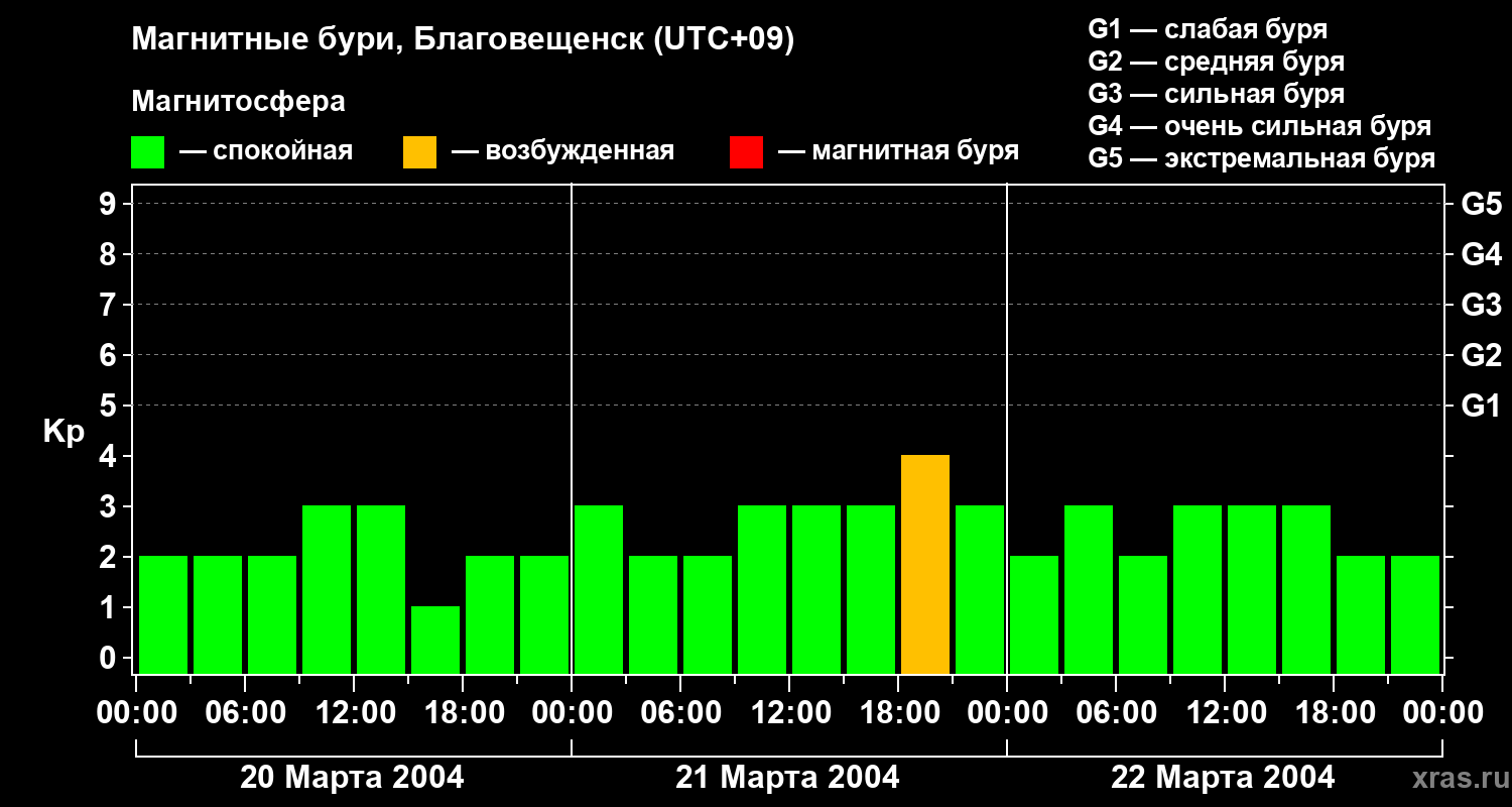 Магнитные бури в Благовещенске — 22 марта 2004 года
