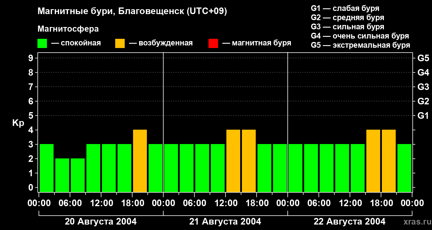 Магнитные бури в Благовещенске — 22 августа 2004 года