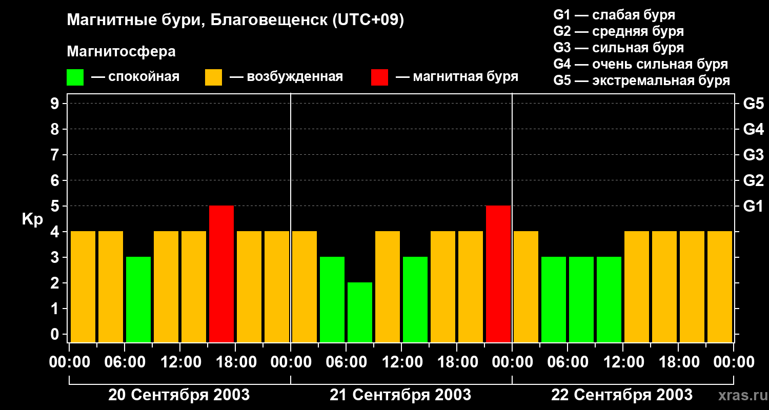 Магнитные бури в Благовещенске в сентябре 2003 года