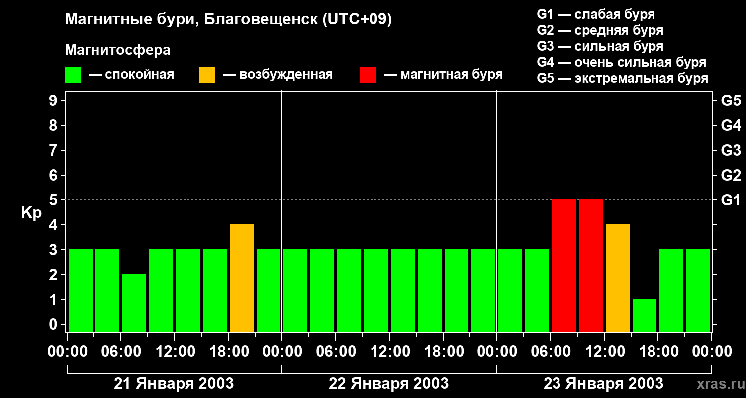 Магнитные бури в Благовещенске — 23 января 2003 года