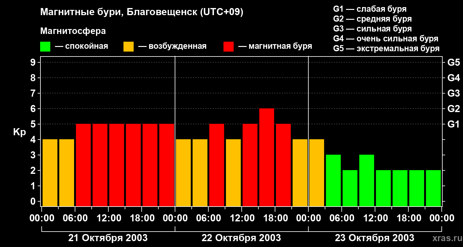 Магнитные бури в Благовещенске — 23 октября 2003 года