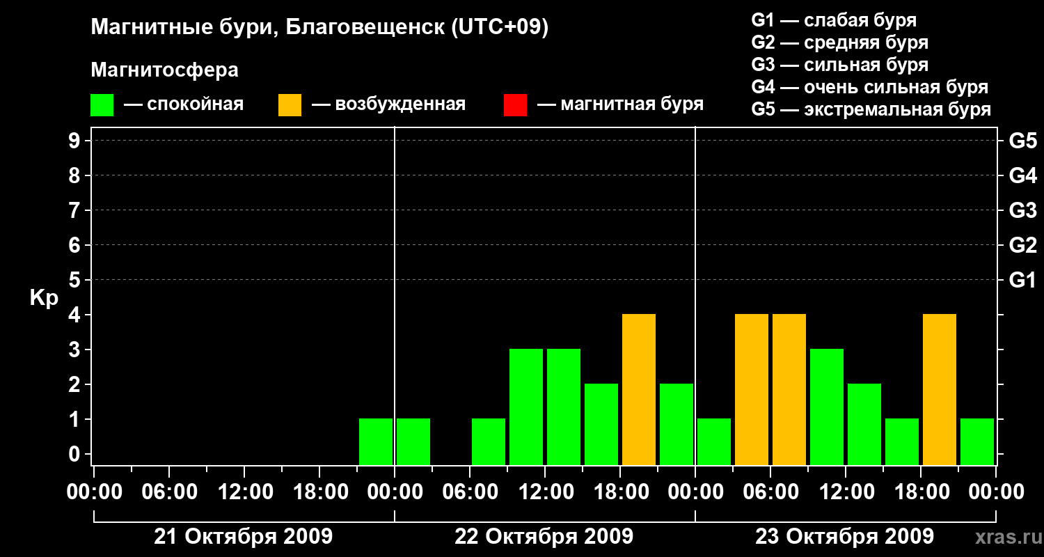 Магнитные бури в Благовещенске — 23 октября 2009 года