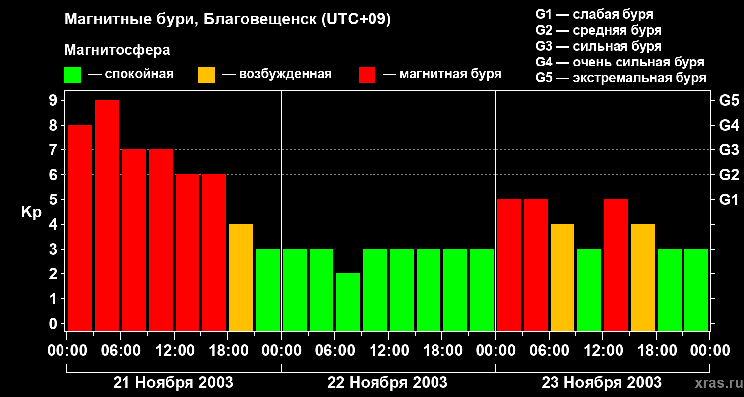 Магнитные бури в Благовещенске — 23 ноября 2003 года
