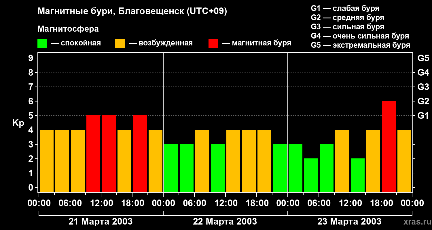 Магнитные бури в Благовещенске — 23 марта 2003 года