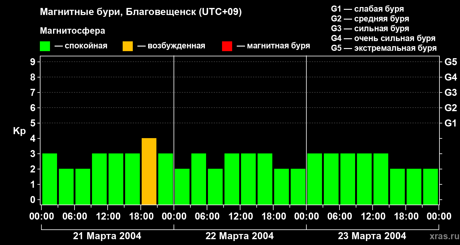 Магнитные бури в Благовещенске — 23 марта 2004 года