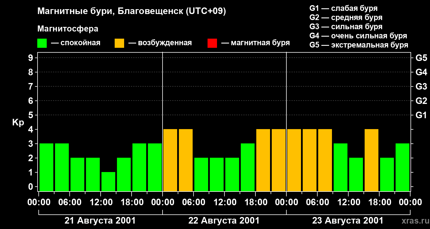 Магнитные бури в Благовещенске — 23 августа 2001 года