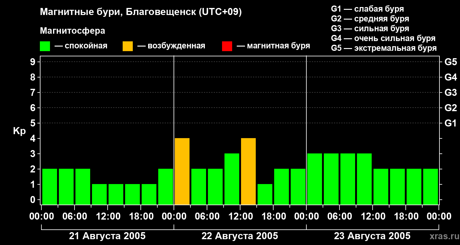 Магнитные бури в Благовещенске — 23 августа 2005 года