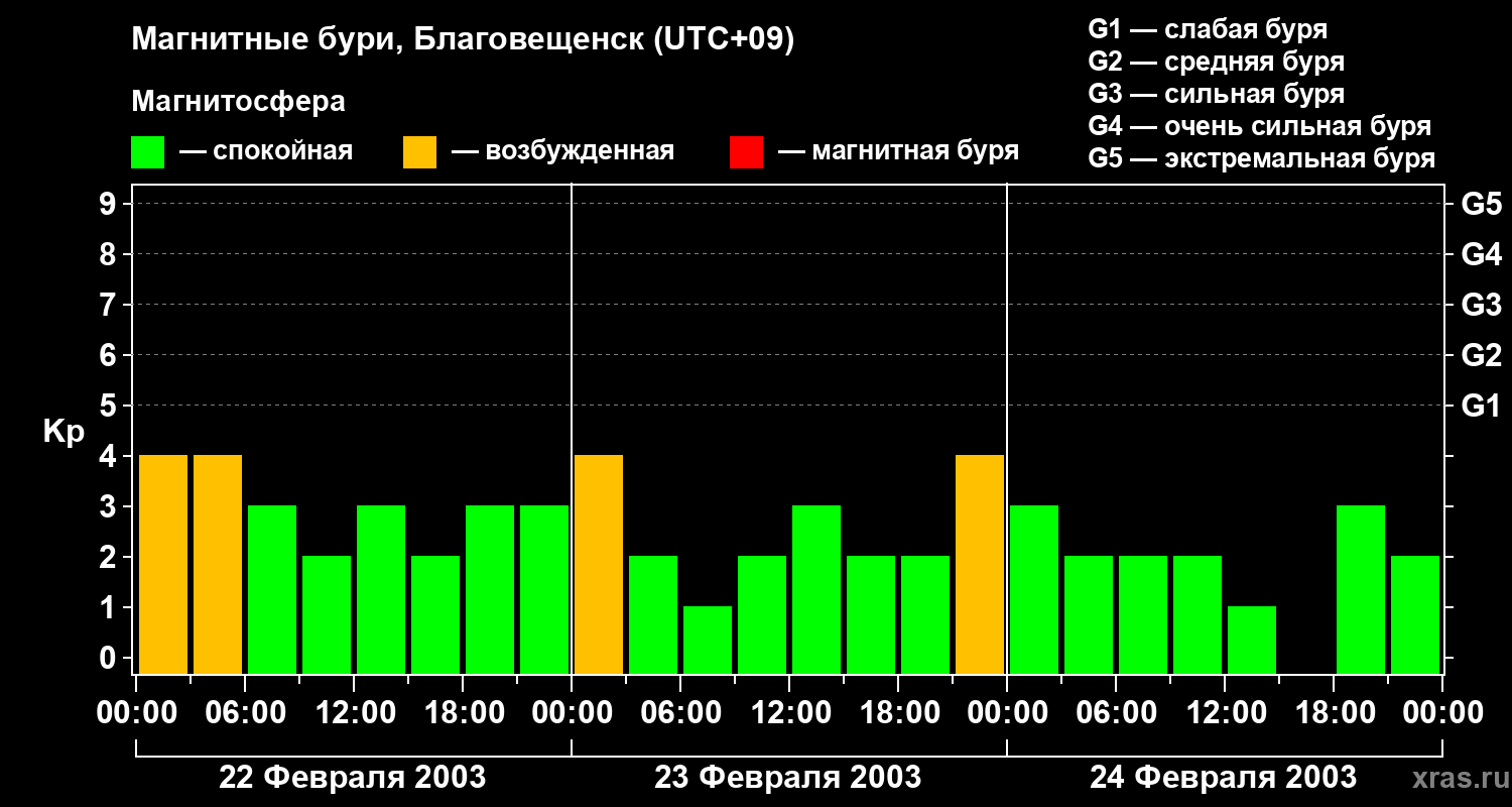 Магнитные бури в Благовещенске — 24 февраля 2003 года