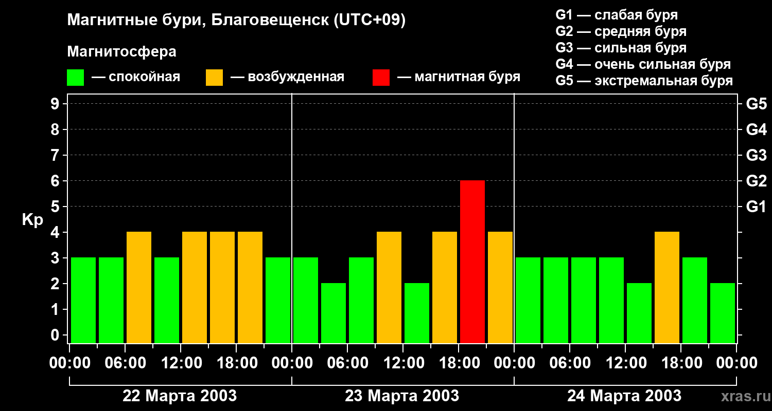 Магнитные бури в Благовещенске — 24 марта 2003 года
