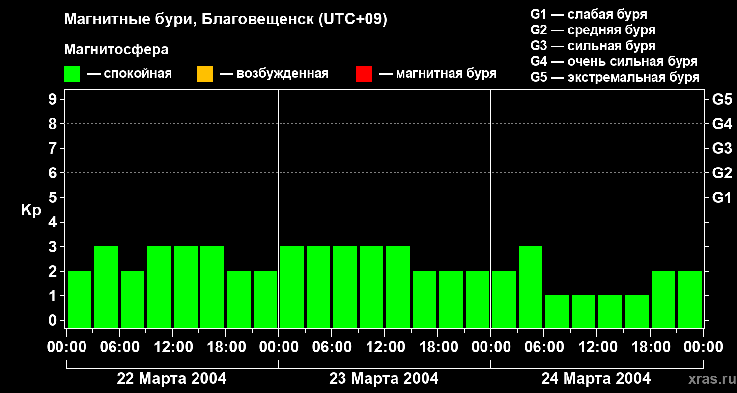 Магнитные бури в Благовещенске — 24 марта 2004 года