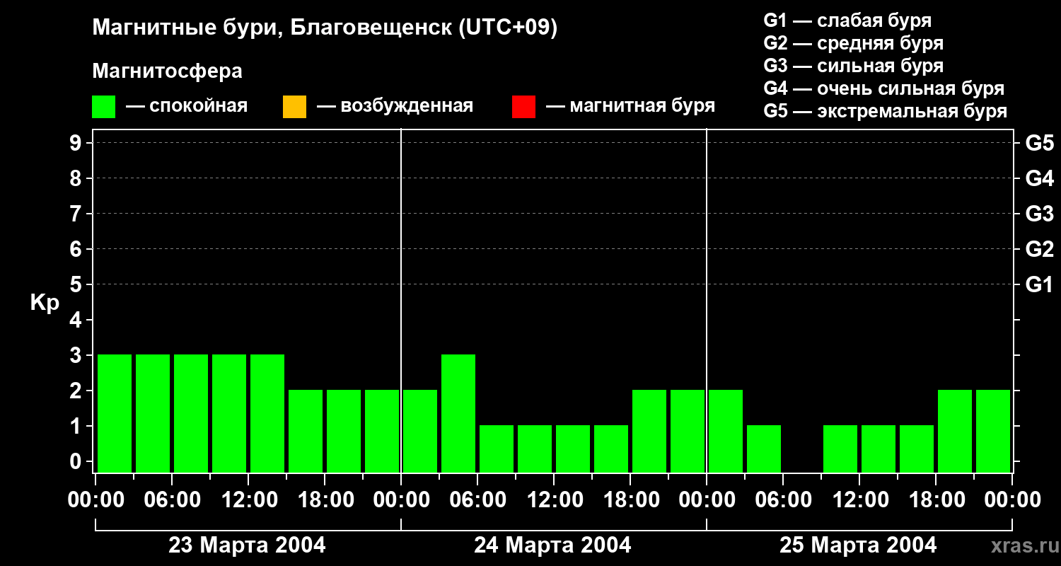 Магнитные бури в Благовещенске — 25 марта 2004 года