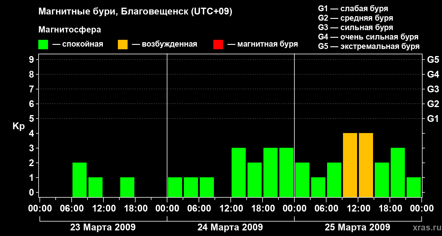 Магнитные бури в Благовещенске — 25 марта 2009 года