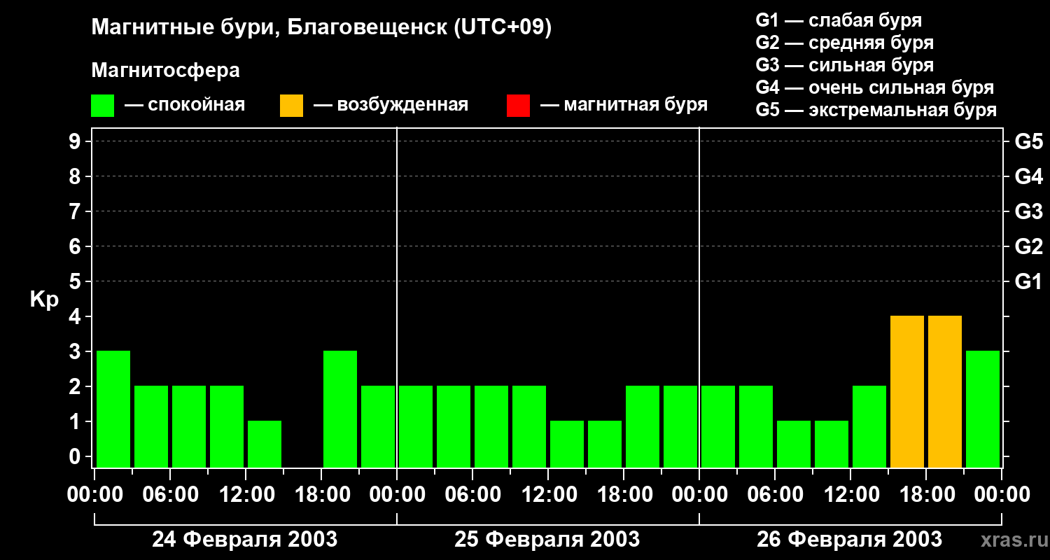 Магнитные бури в Благовещенске — 26 февраля 2003 года
