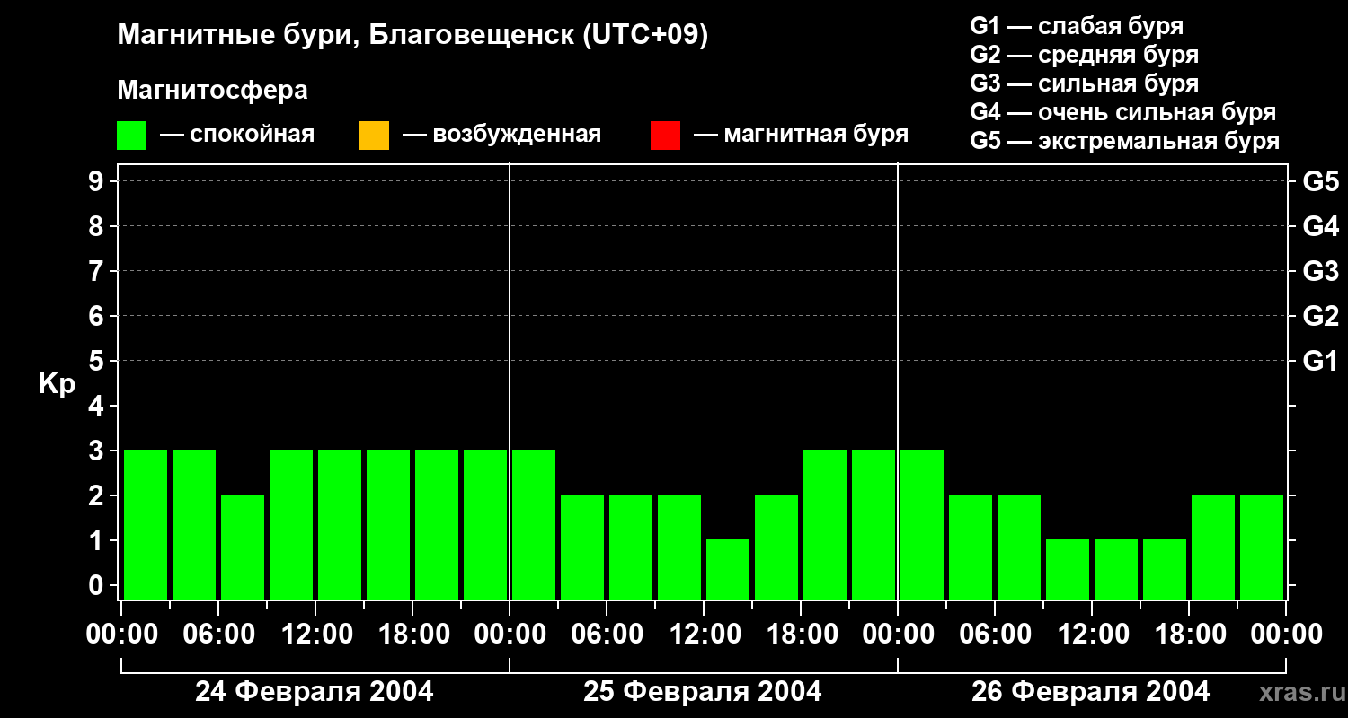 Магнитные бури в Благовещенске — 26 февраля 2004 года