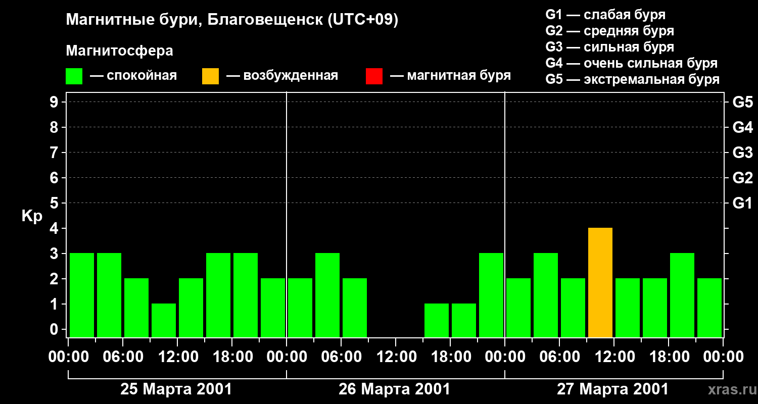 Магнитные бури в Благовещенске — 27 марта 2001 года