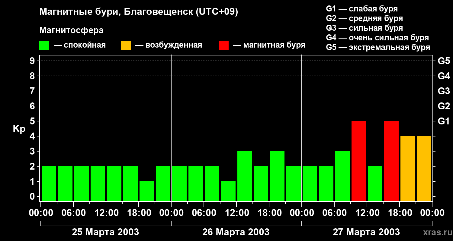 Магнитные бури в Благовещенске — 27 марта 2003 года