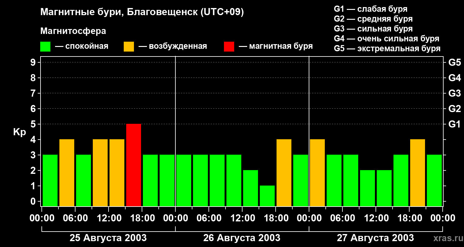 Магнитные бури в Благовещенске — 27 августа 2003 года