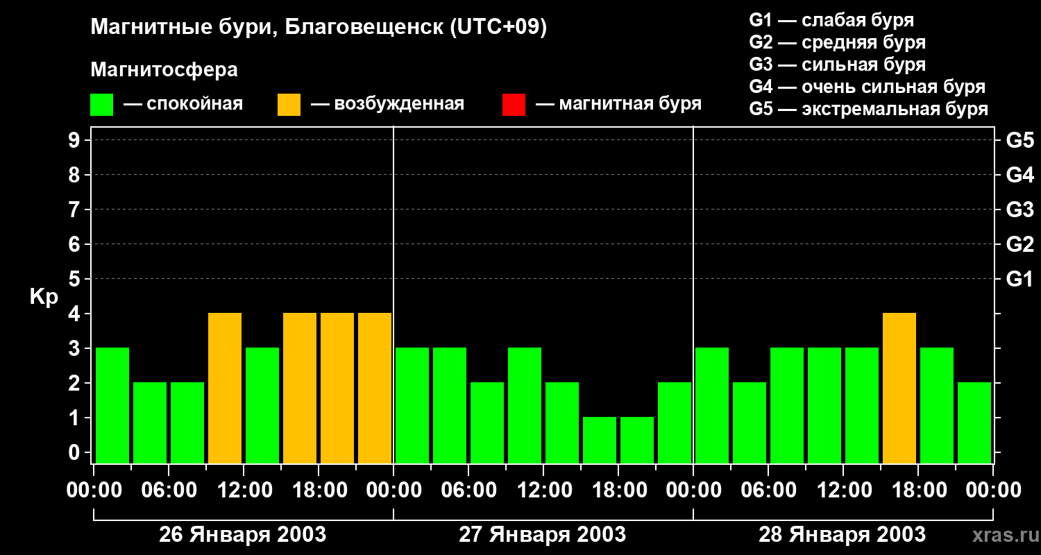 Магнитные бури в Благовещенске — 28 января 2003 года