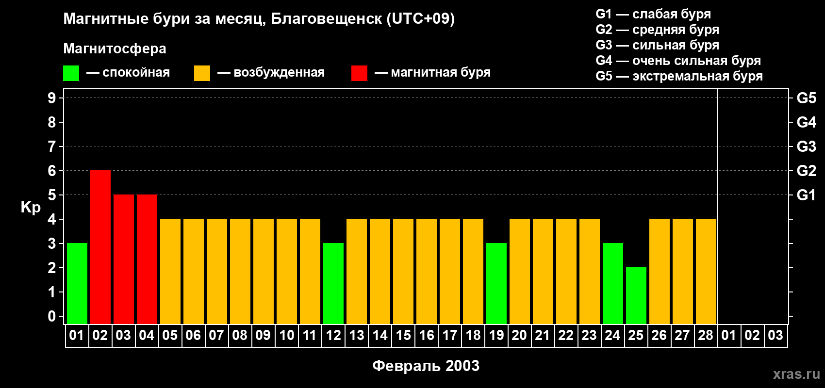 Магнитные бури в Благовещенске — 28 февраля 2003 года