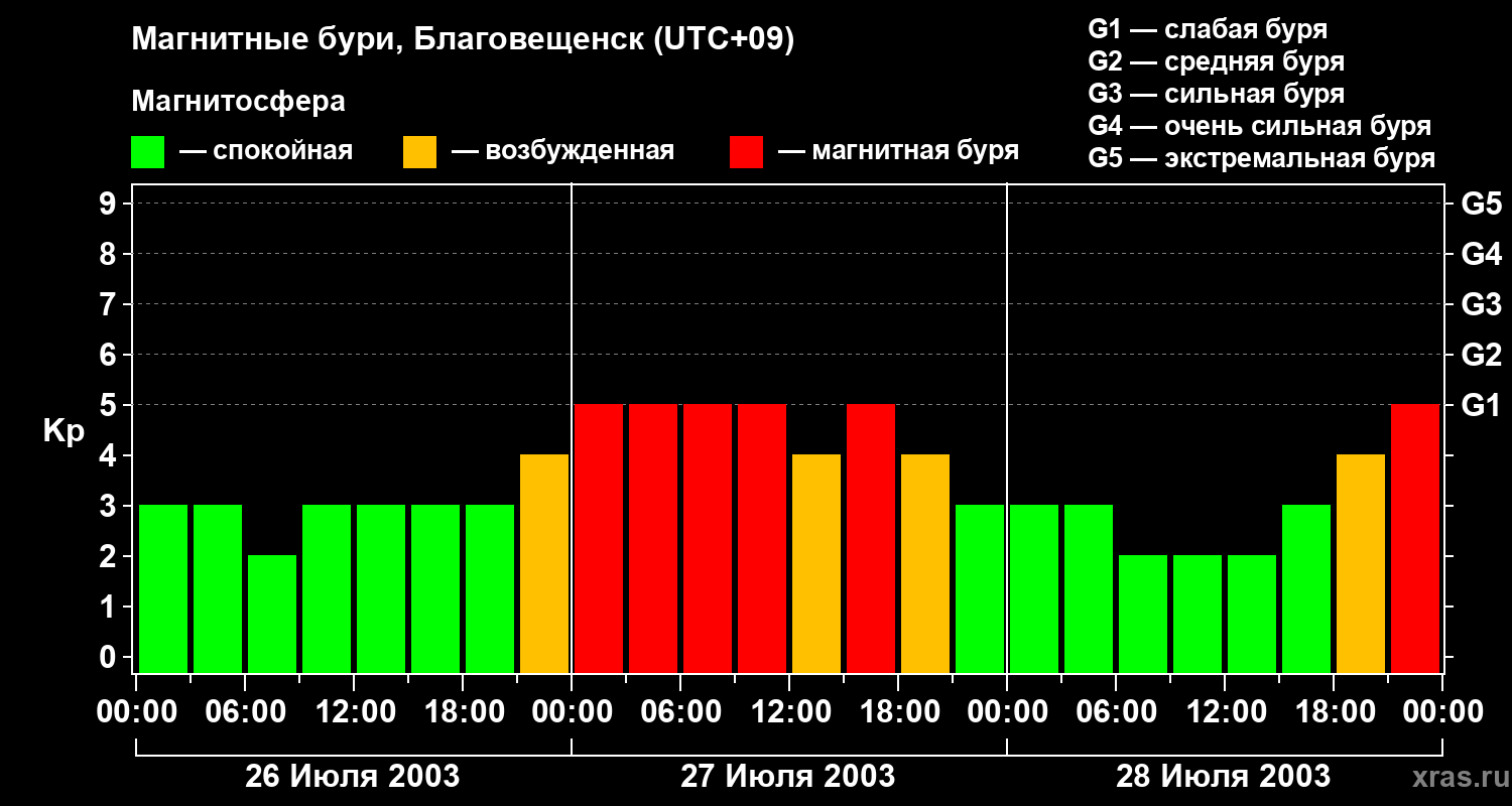Магнитные бури в Благовещенске — 28 июля 2003 года