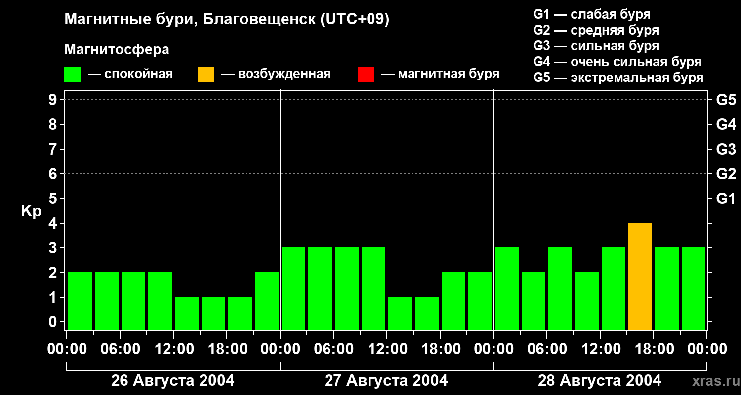 Магнитные бури в Благовещенске — 28 августа 2004 года