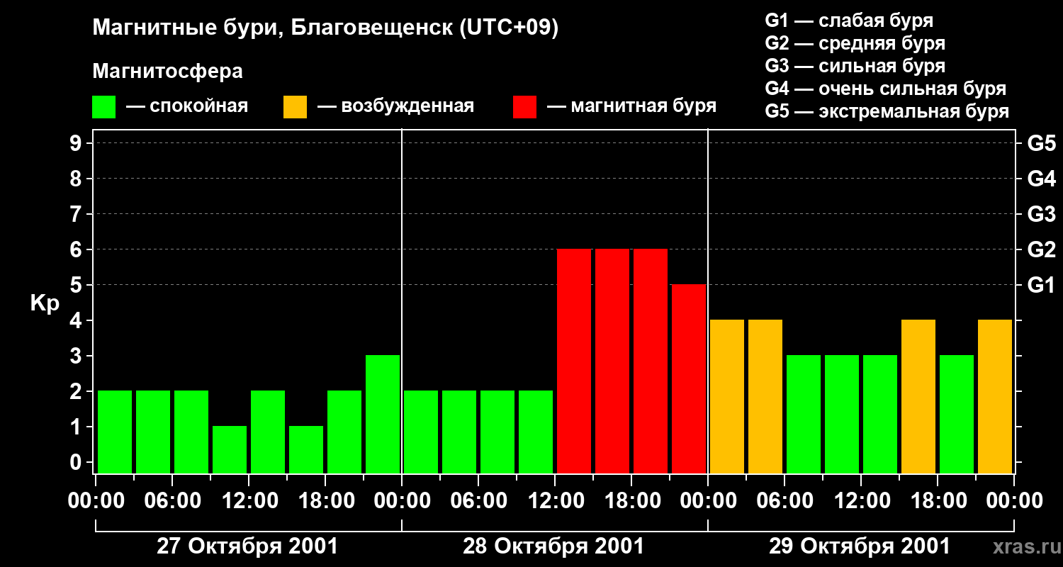 Магнитные бури в Благовещенске — 29 октября 2001 года