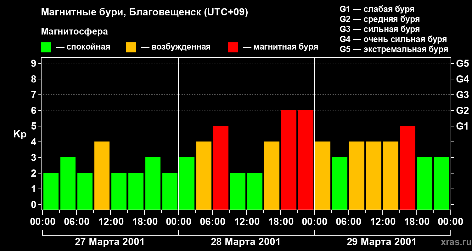 Магнитные бури в Благовещенске — 29 марта 2001 года