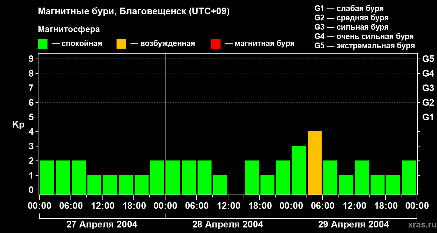 Магнитные бури в Благовещенске — 29 апреля 2004 года