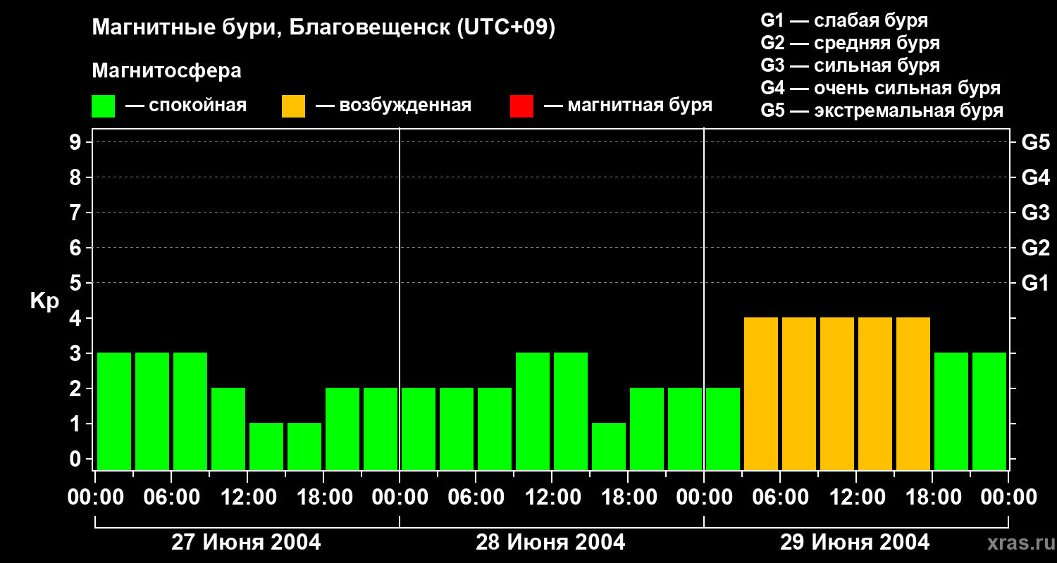 Магнитные бури в Благовещенске — 29 июня 2004 года
