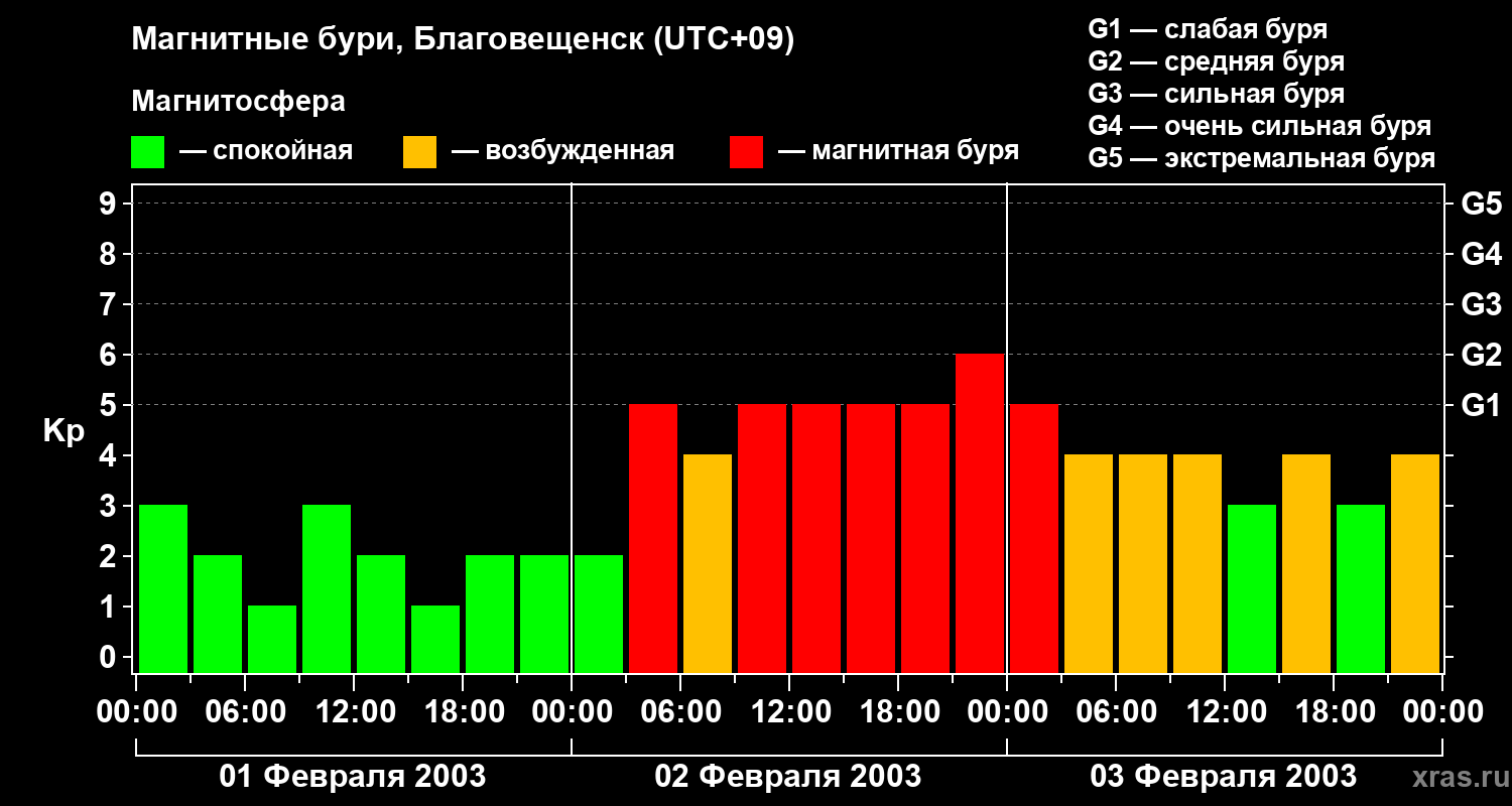 Магнитные бури в Благовещенске — 3 февраля 2003 года