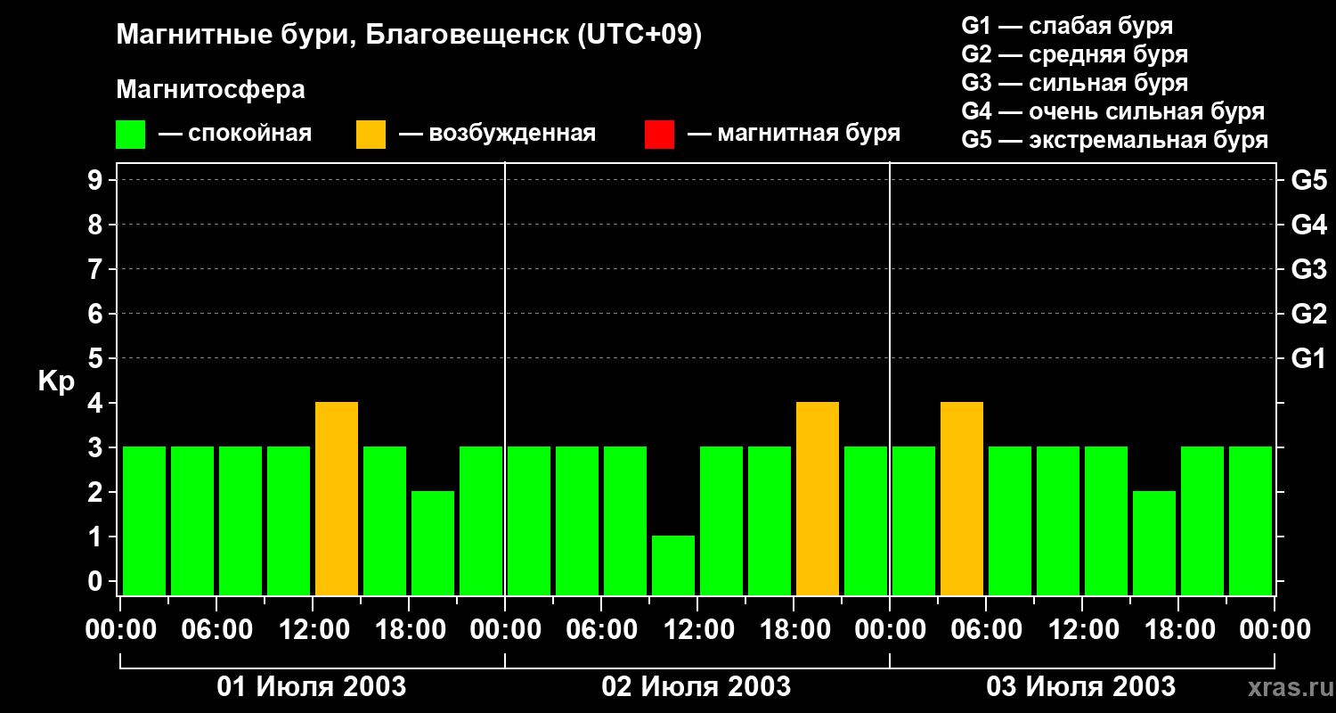 Магнитные бури в Благовещенске — 3 июля 2003 года