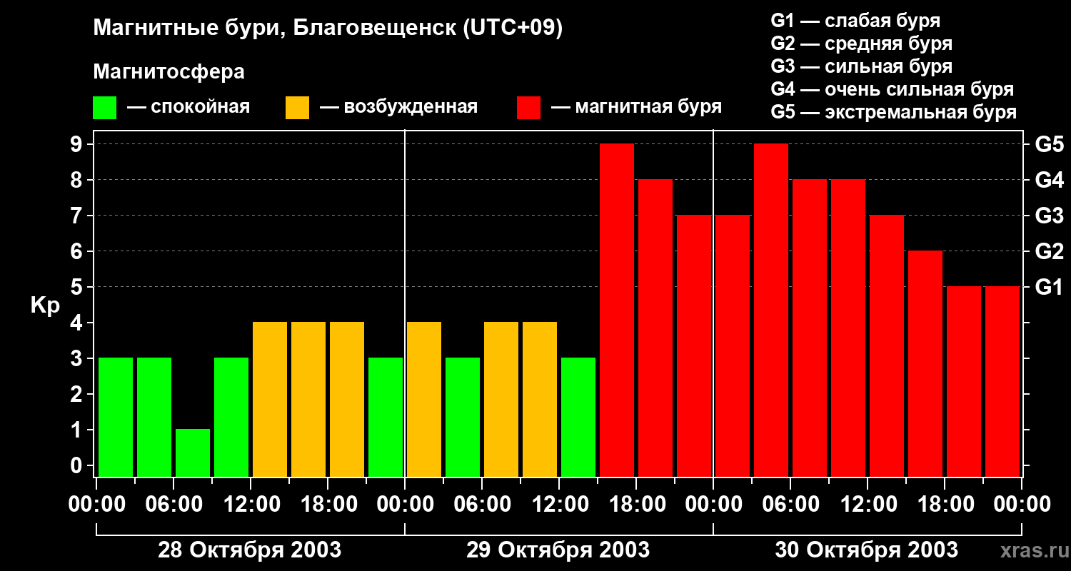 Магнитные бури в Благовещенске — 30 октября 2003 года