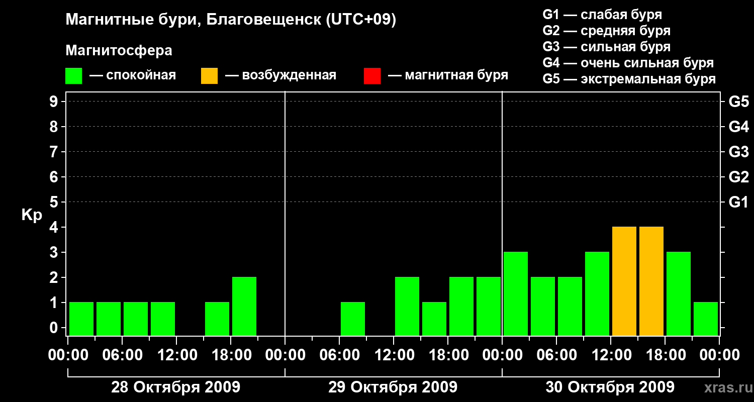 Магнитные бури в Благовещенске — 30 октября 2009 года