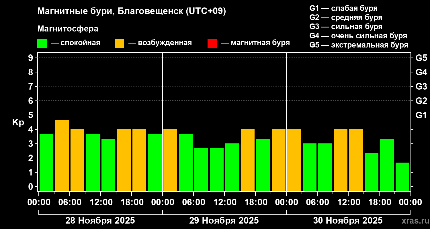 Магнитные бури в Благовещенске — 30 ноября 2025 года