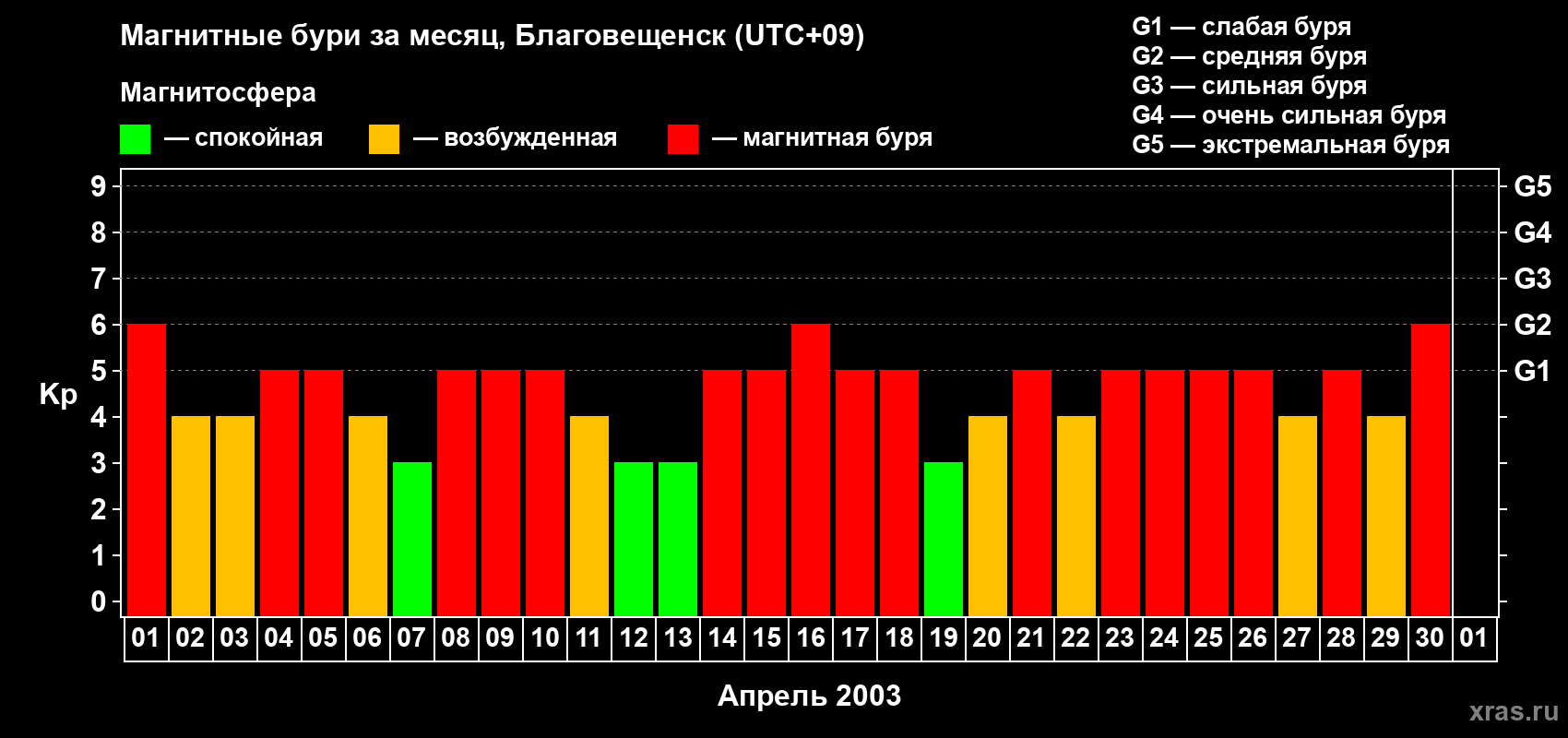 Магнитные бури в Благовещенске — 30 апреля 2003 года