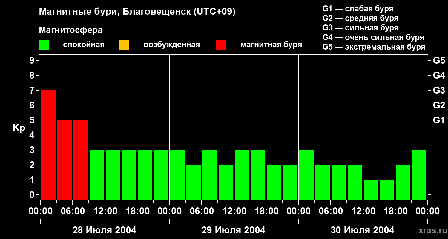Магнитные бури в Благовещенске — 30 июля 2004 года