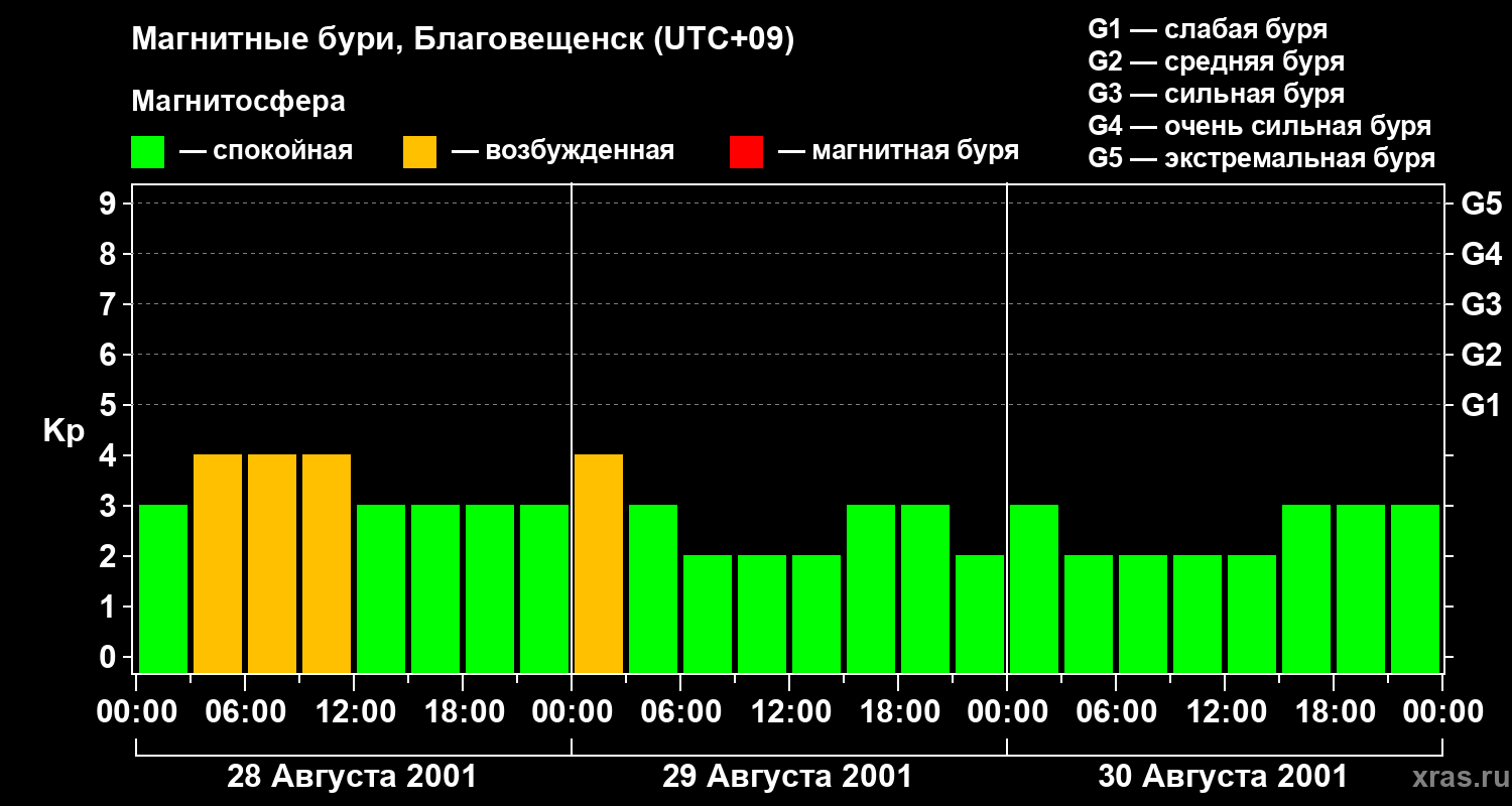 Магнитные бури в Благовещенске — 30 августа 2001 года