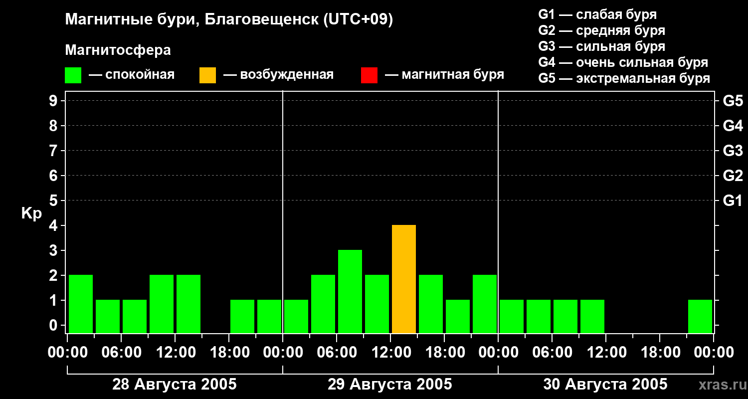 Магнитные бури в Благовещенске — 30 августа 2005 года