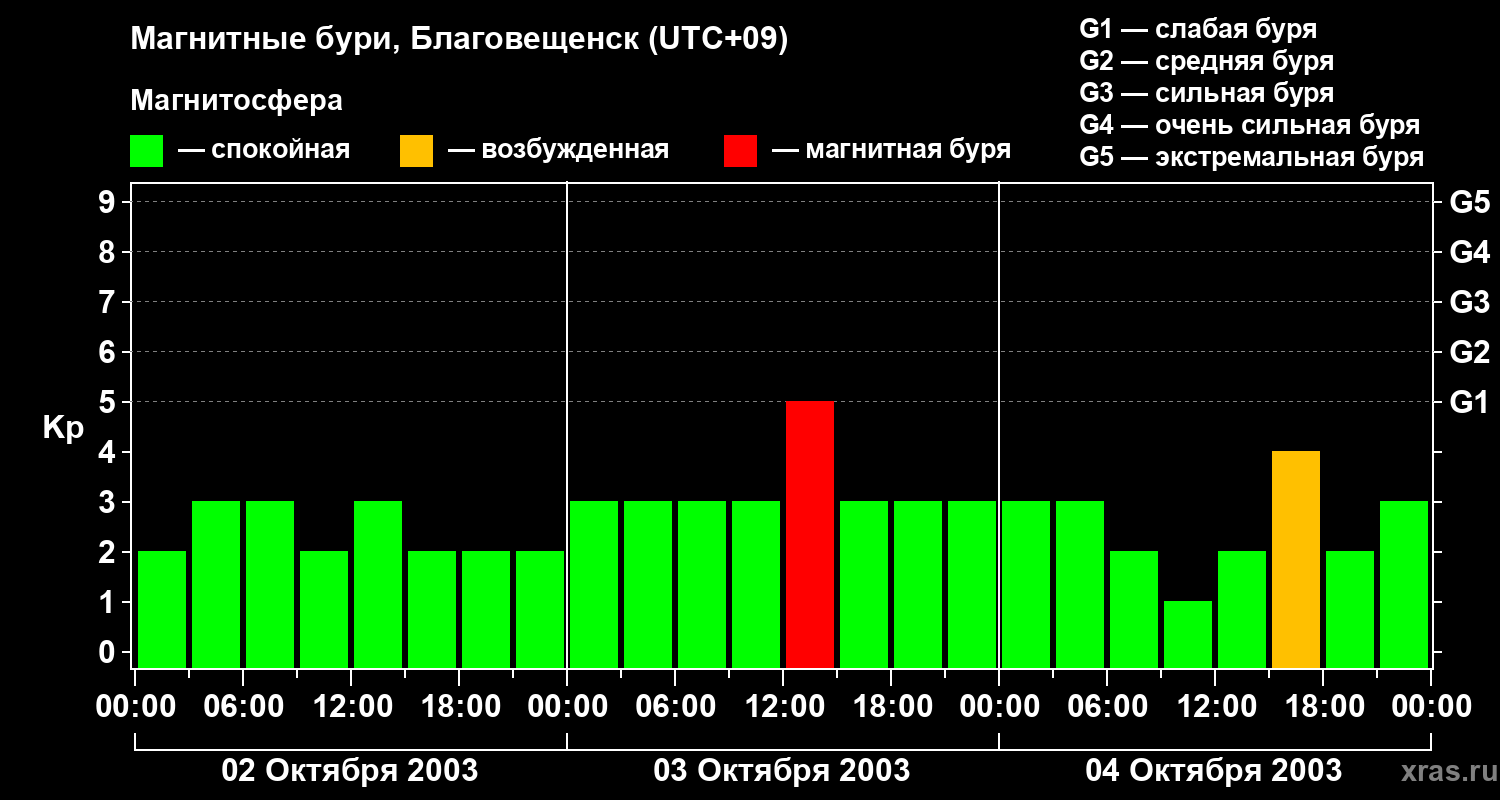 Магнитные бури в Благовещенске — 4 октября 2003 года