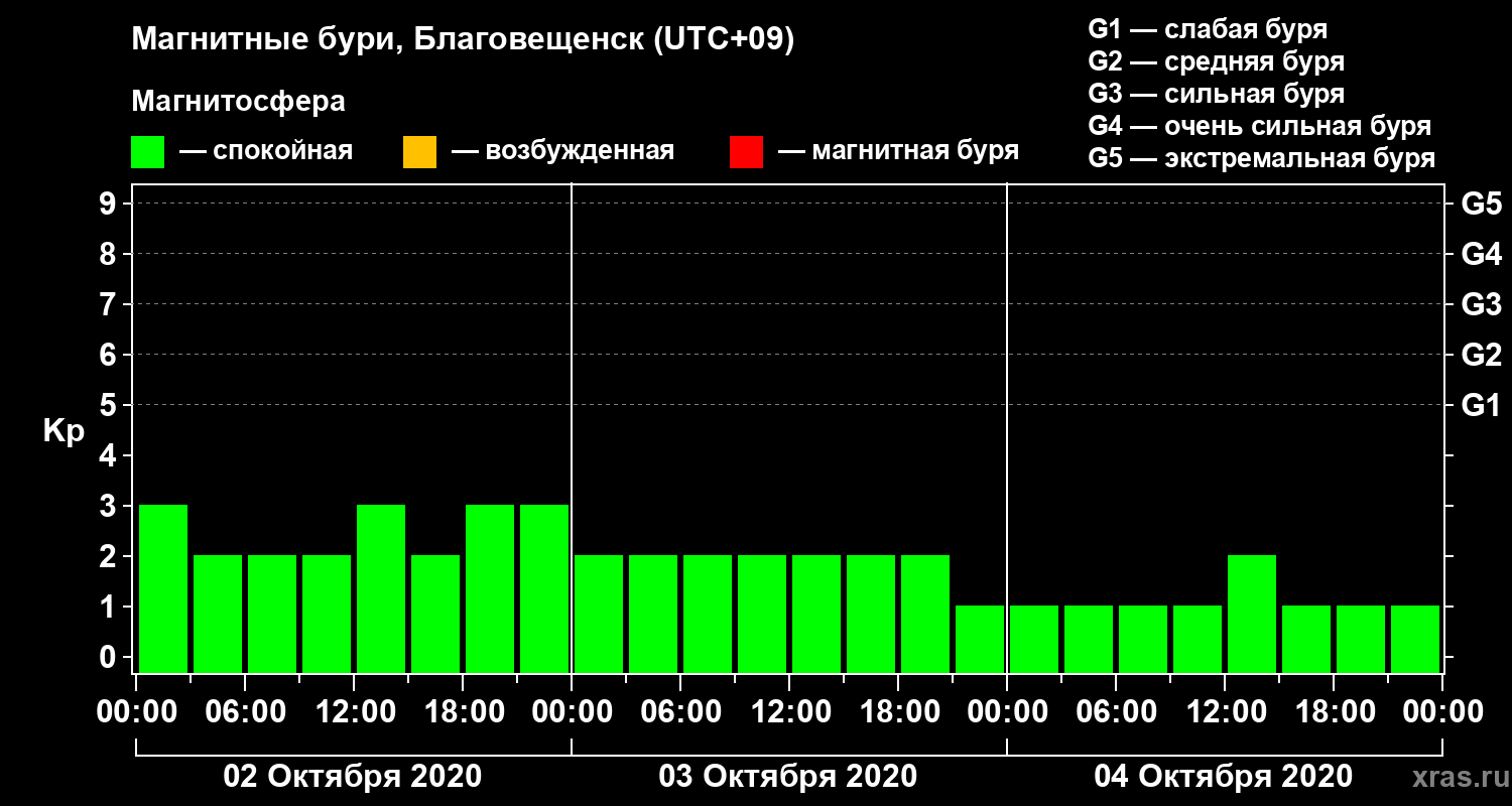 Магнитные бури в Благовещенске 4 октября 2020 года