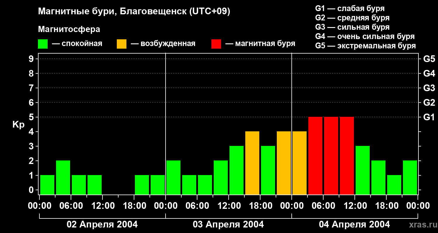 Магнитные бури в Благовещенске — 4 апреля 2004 года