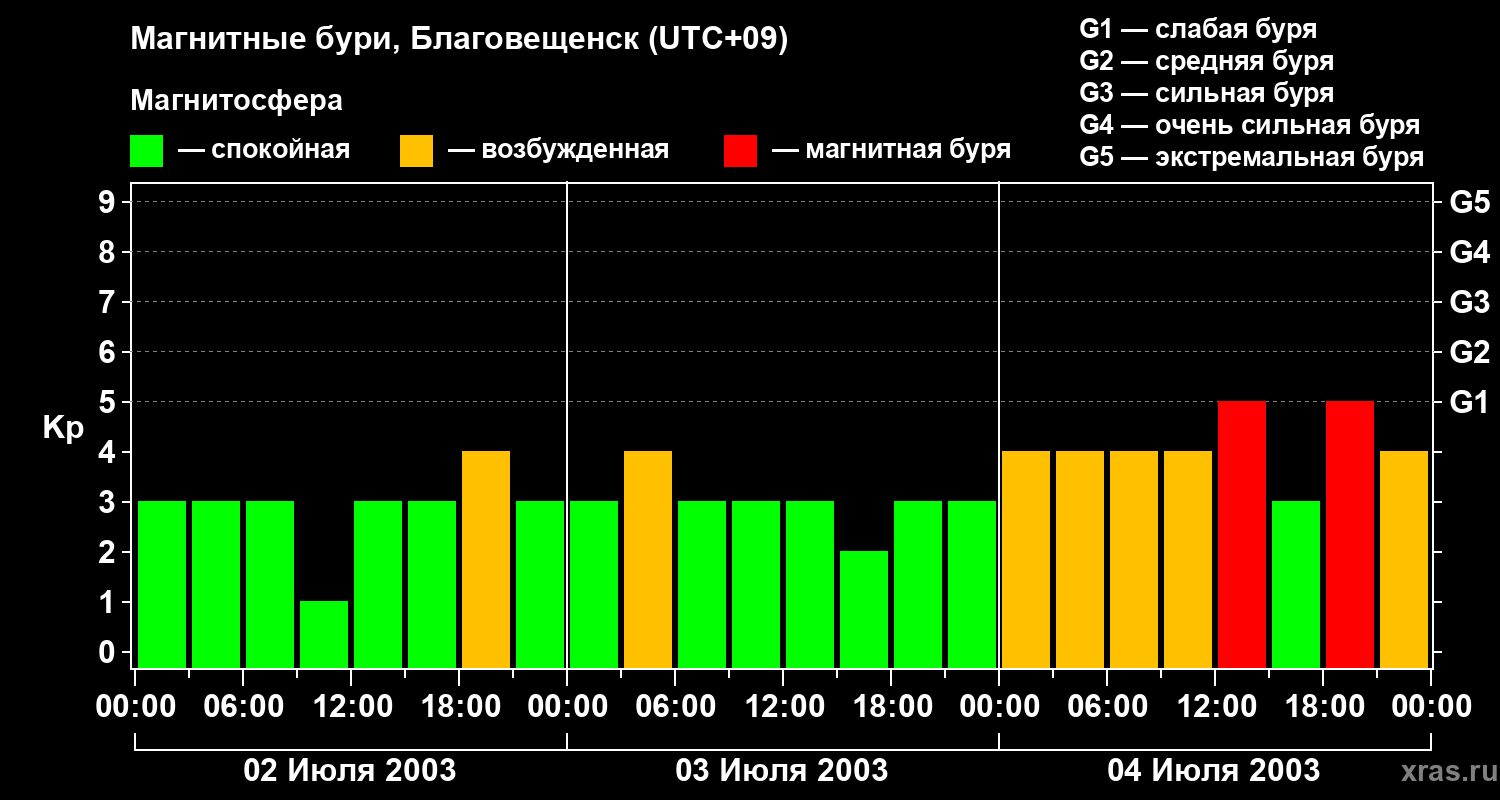 Магнитные бури в Благовещенске — 4 июля 2003 года