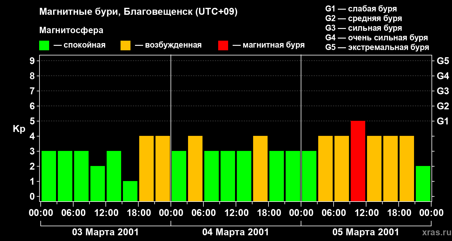 Магнитные бури в Благовещенске — 5 марта 2001 года