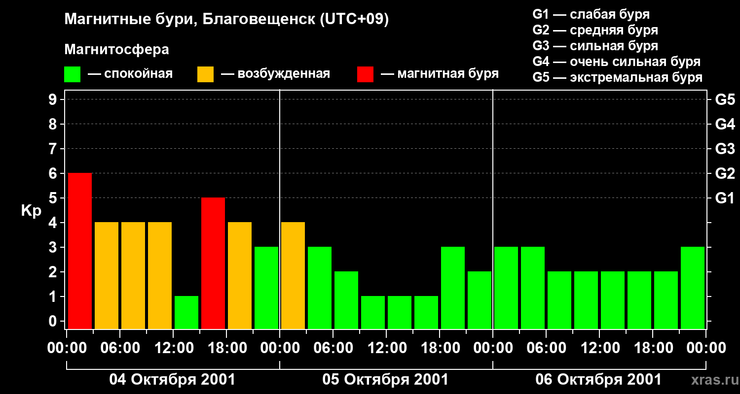 Магнитные бури в Благовещенске — 6 октября 2001 года