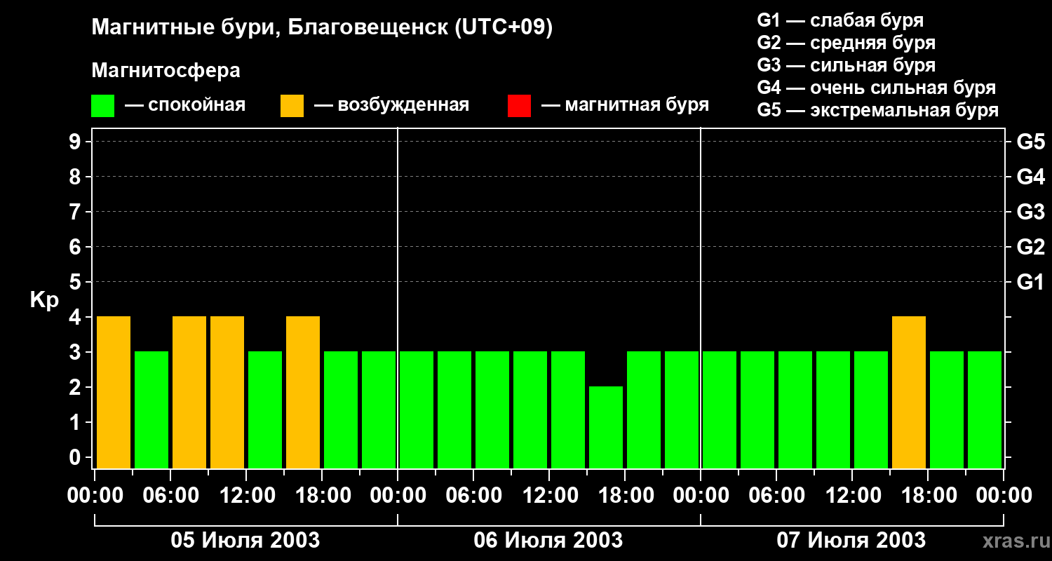 Магнитные бури в Благовещенске — 7 июля 2003 года
