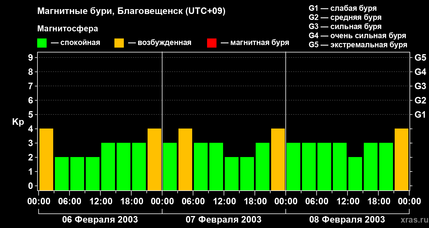 Магнитные бури в Благовещенске — 8 февраля 2003 года